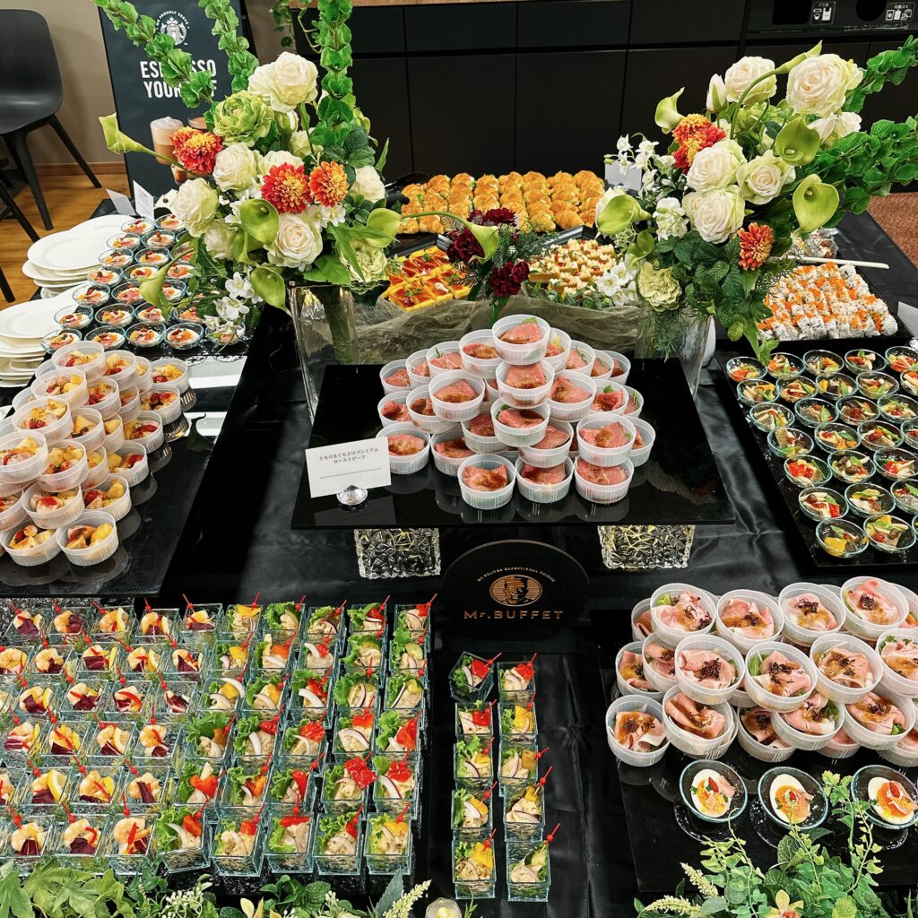 主催者にとっては、準備や片付けが少ないのも軽食ケータリングのメリットです。Mr.BUFFETのように、配達から設営、撤収、ゴミ回収まで対応してくれるサービスなら、幹事は本来の進行やゲスト対応に集中できます。限られた時間の中で効率的に進められるのもポイントです。