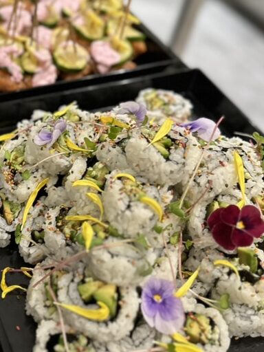 ゲストの好みやイベントのテーマに合わせて、料理のスタイルを自由にカスタマイズできるのもMr.BUFFETの強みです。寿司と洋風ビュッフェを組み合わせた和洋折衷スタイルに加え、オリジナリティあふれるメニューも提案可能。例えば、アボカドとクリームチーズを使った華やかな巻き寿司や、スパイスが香るヘルシーなひよこ豆のキーマカレーなど、特別感のある一皿で会場を彩ります。細やかな提案で、記憶に残る食体験を演出します。