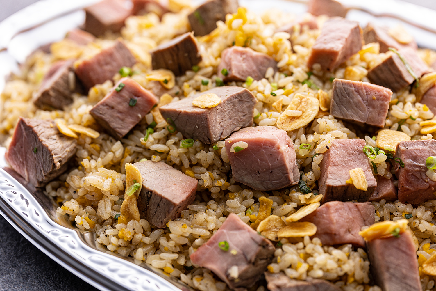 ほかほかに温めたガーリックステーキピラフは、チューフィングで常に食べごろの状態をキープ。